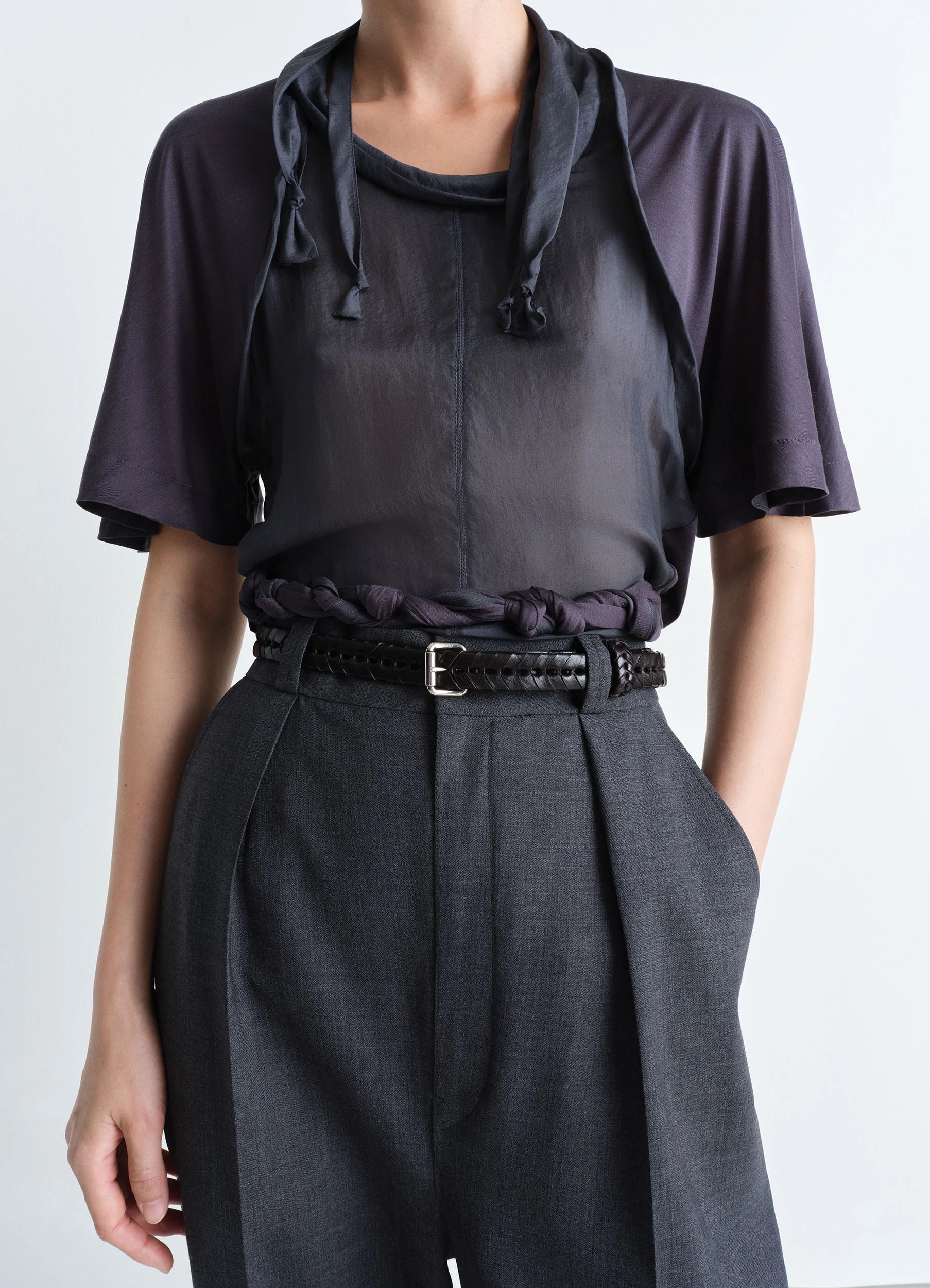 This new unisex belt is introduced this season to complement the LEMAIRE vestiaire. The Braided Belt 20 is crafted in smooth vegetable-tanned leather with a soft hand, entirely braided by hand. The silver metal buckle adds a touch of light to the silhouette.