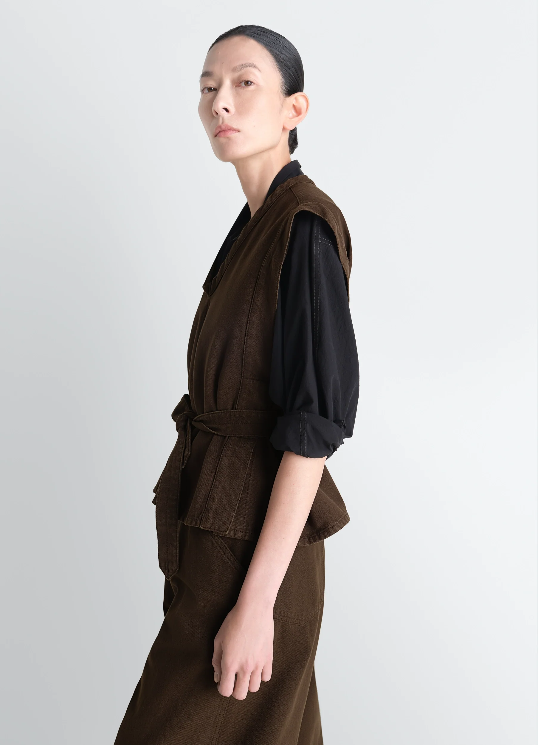Inspired by LEMAIRE’s balance between comfort and elegance, this chasuble top is made from broken twill, offering a feminine and timeless silhouette.