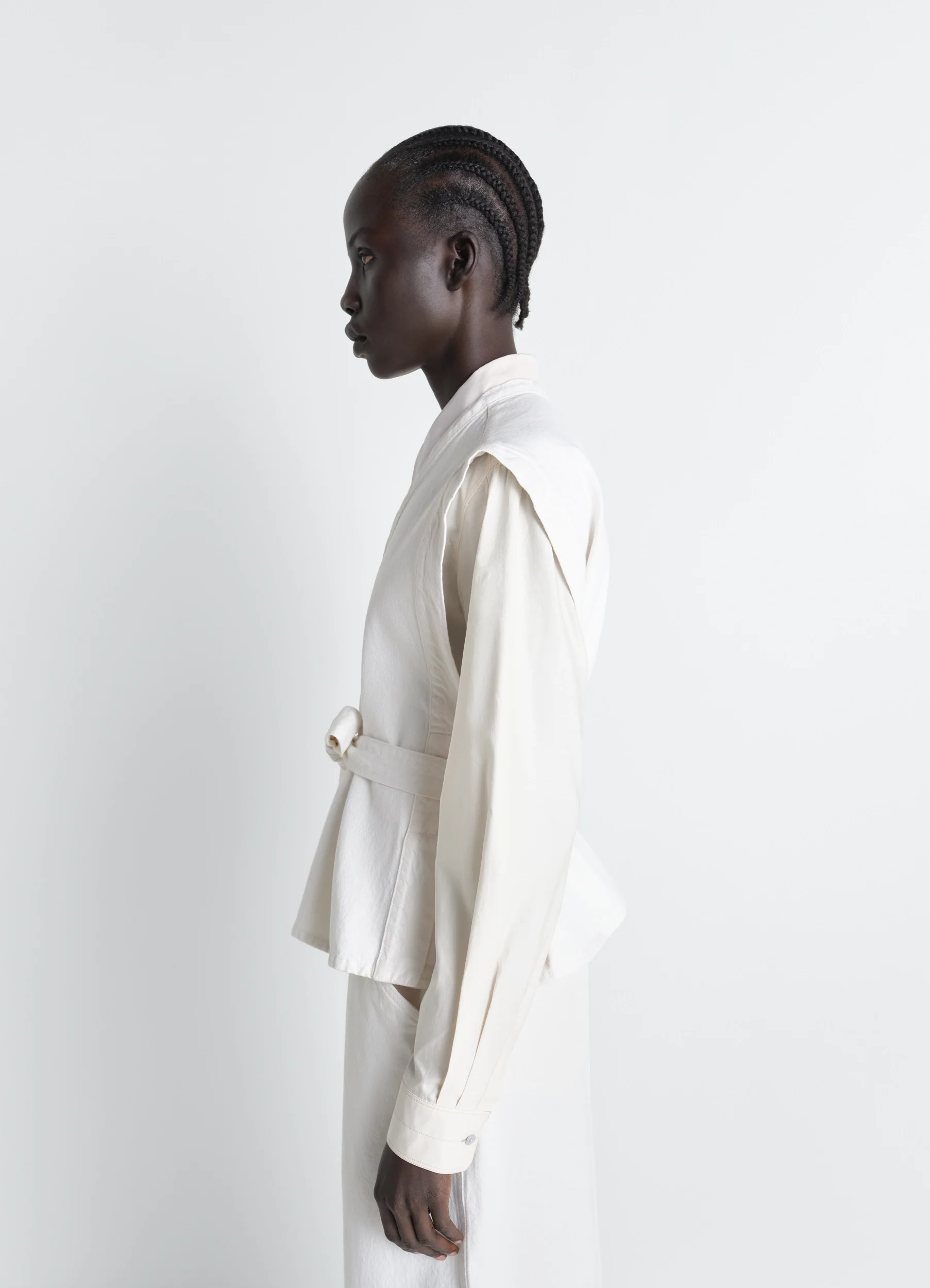 Inspired by LEMAIRE’s balance between comfort and elegance, this chasuble top is crafted from bleached denim for a feminine and timeless silhouette.