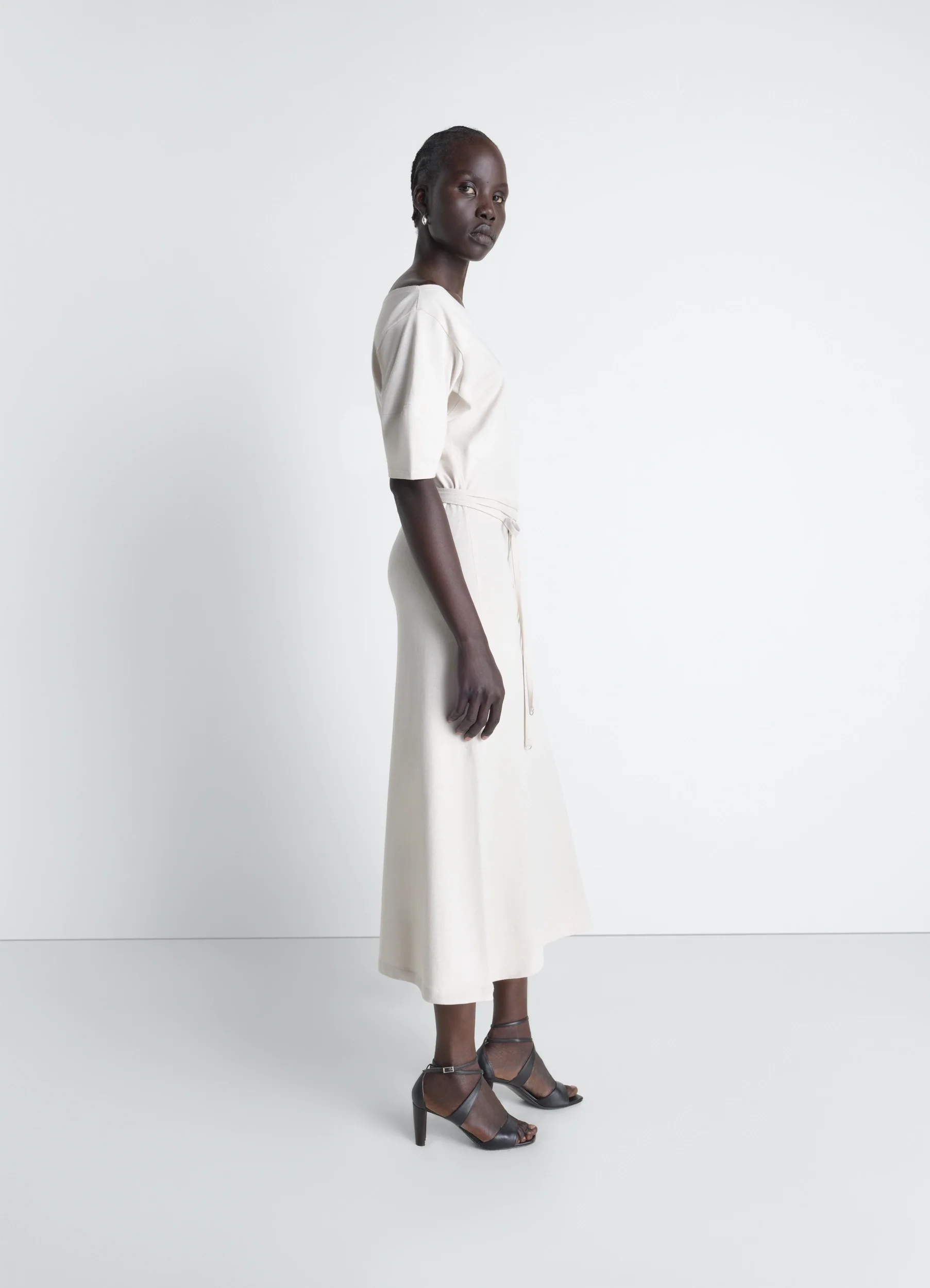 Delicacy is emphasized in this dress with refined details. Crafted from a thick cotton-and-linen jersey, it features a cutout with bare shoulders.