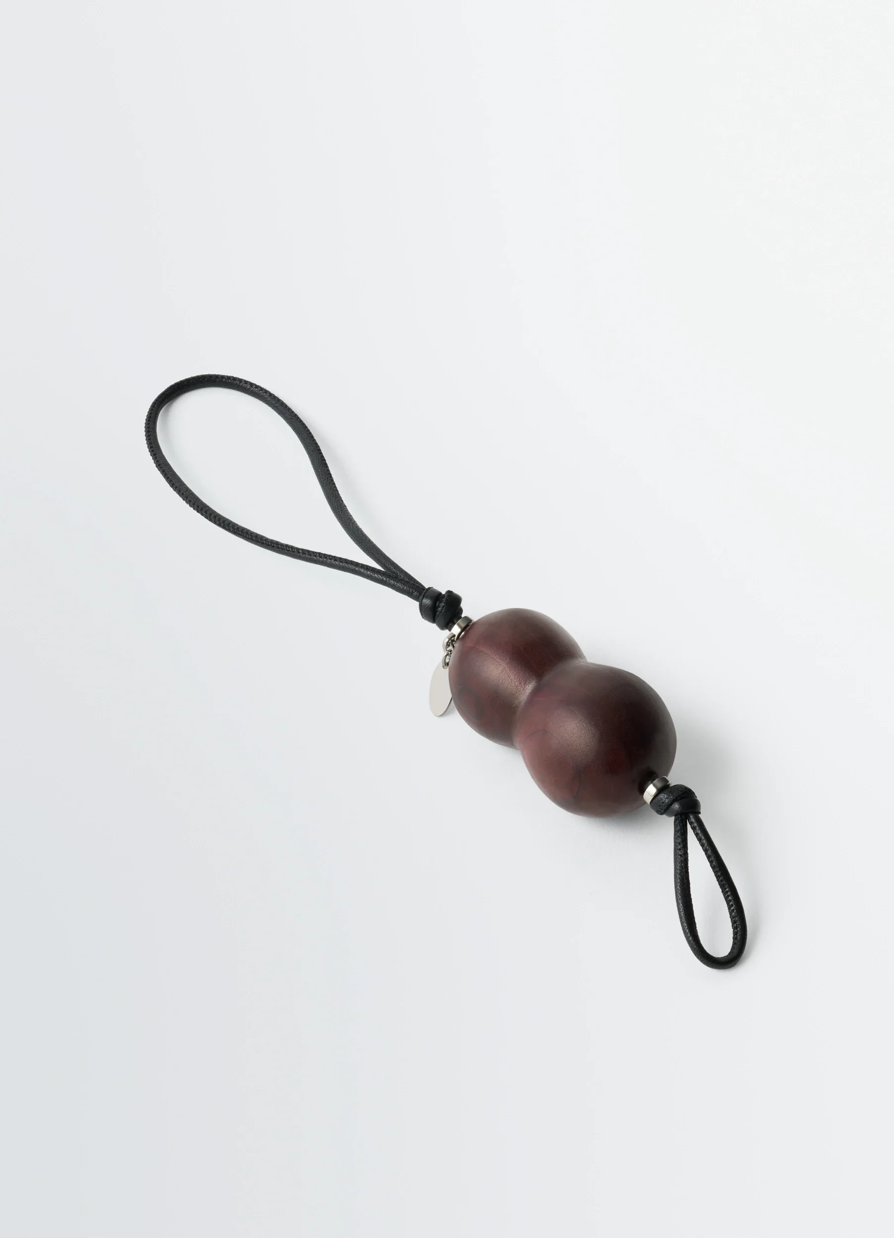 A subtle Lemaire accessory, the Peanuts bag charm in leather on a cord clips easily to any bag using its carabiner.