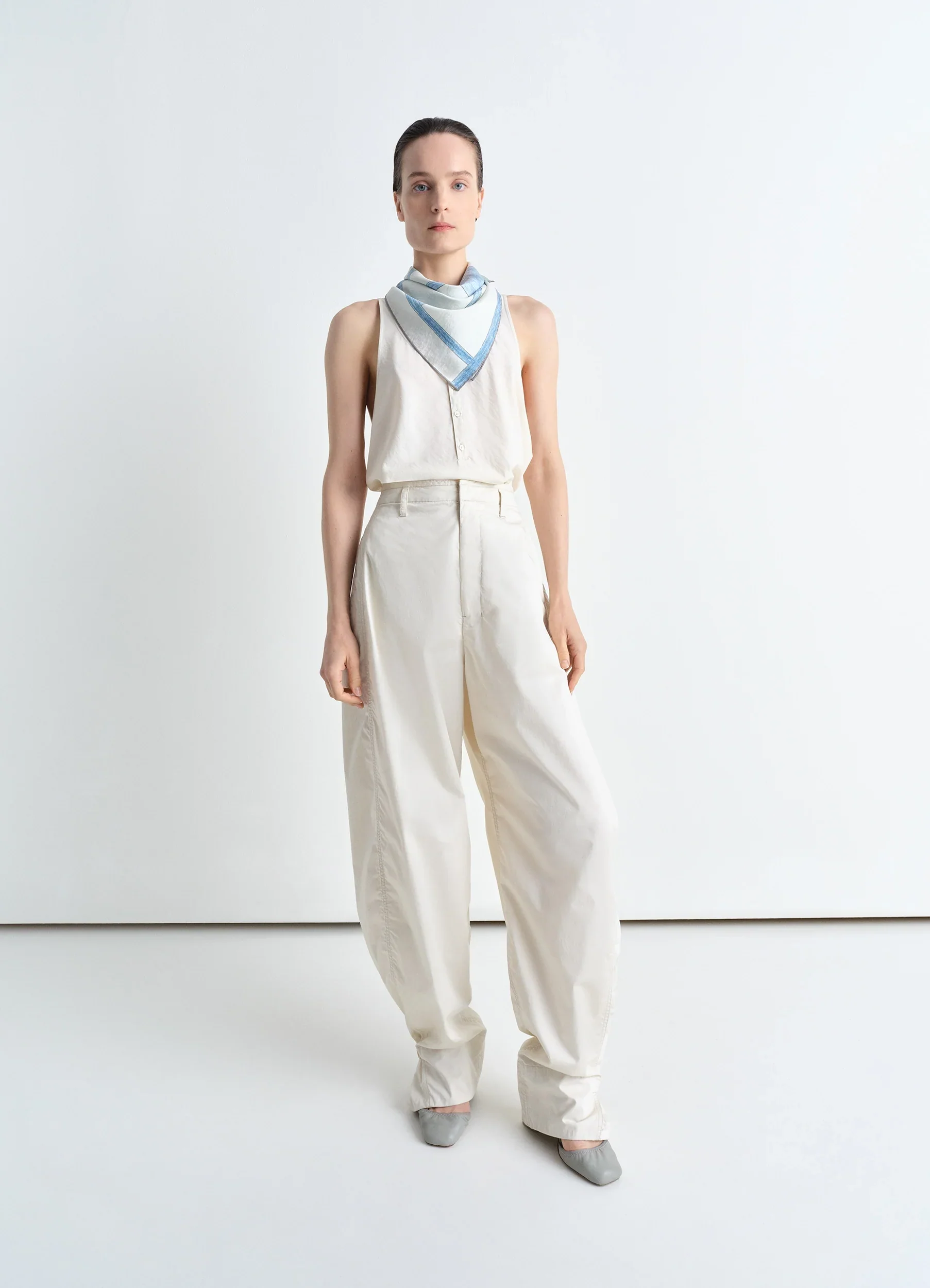 This season sees the results of LEMAIRE's collaboration with artist Philippe Weisbecker, considering the beauty in the everyday objects. A piece of work by the artist, depicting a blue chair, s printed on this light and airy dry silk square with a soft hand.