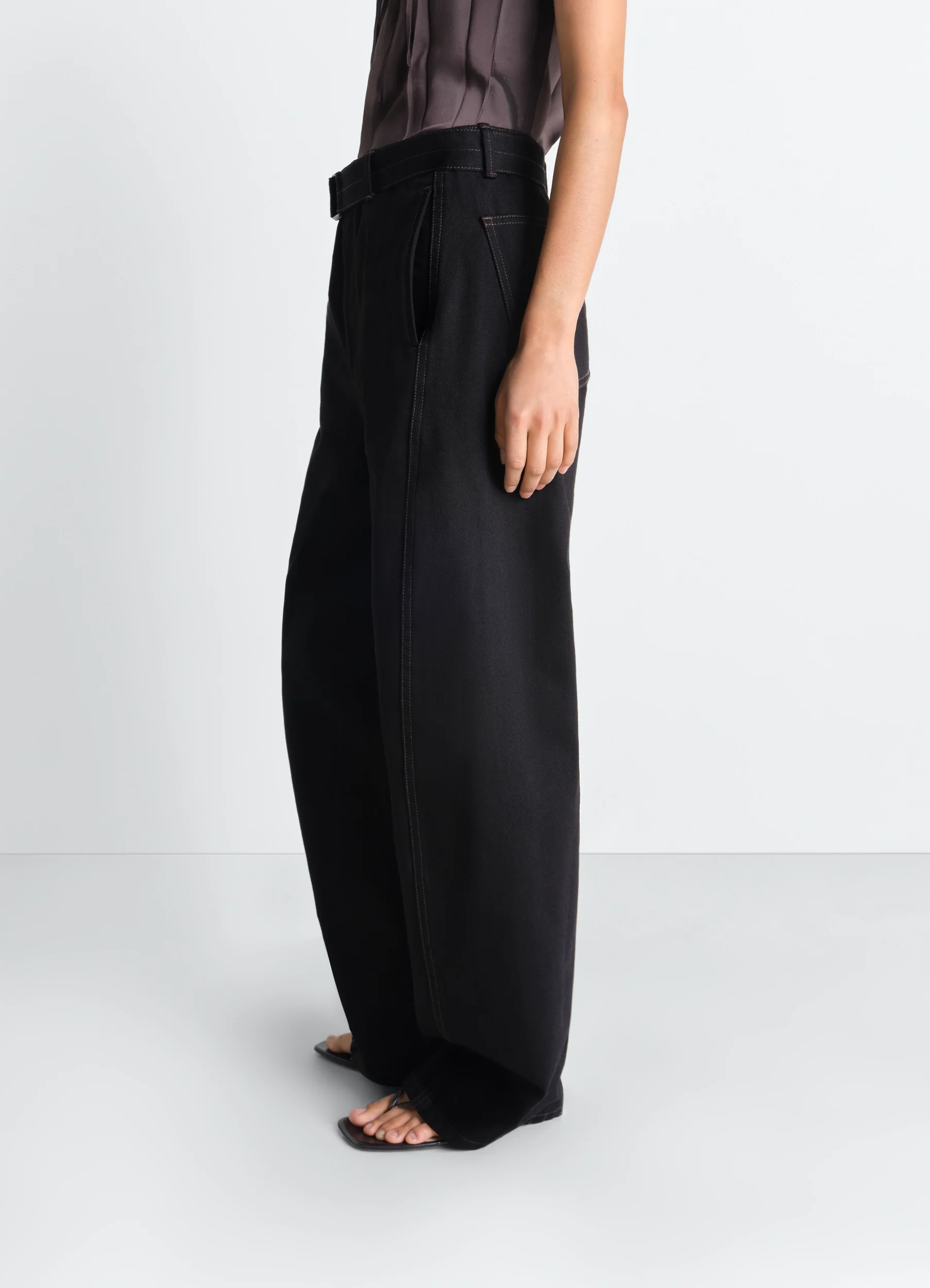 These belted Twisted pants are a classic unisex piece from the Lemaire wardrobe, with their twisted seams giving a rounded shape to the leg and a removable belt. They're made from Lemaire's signature thick denim in a deep black wash.