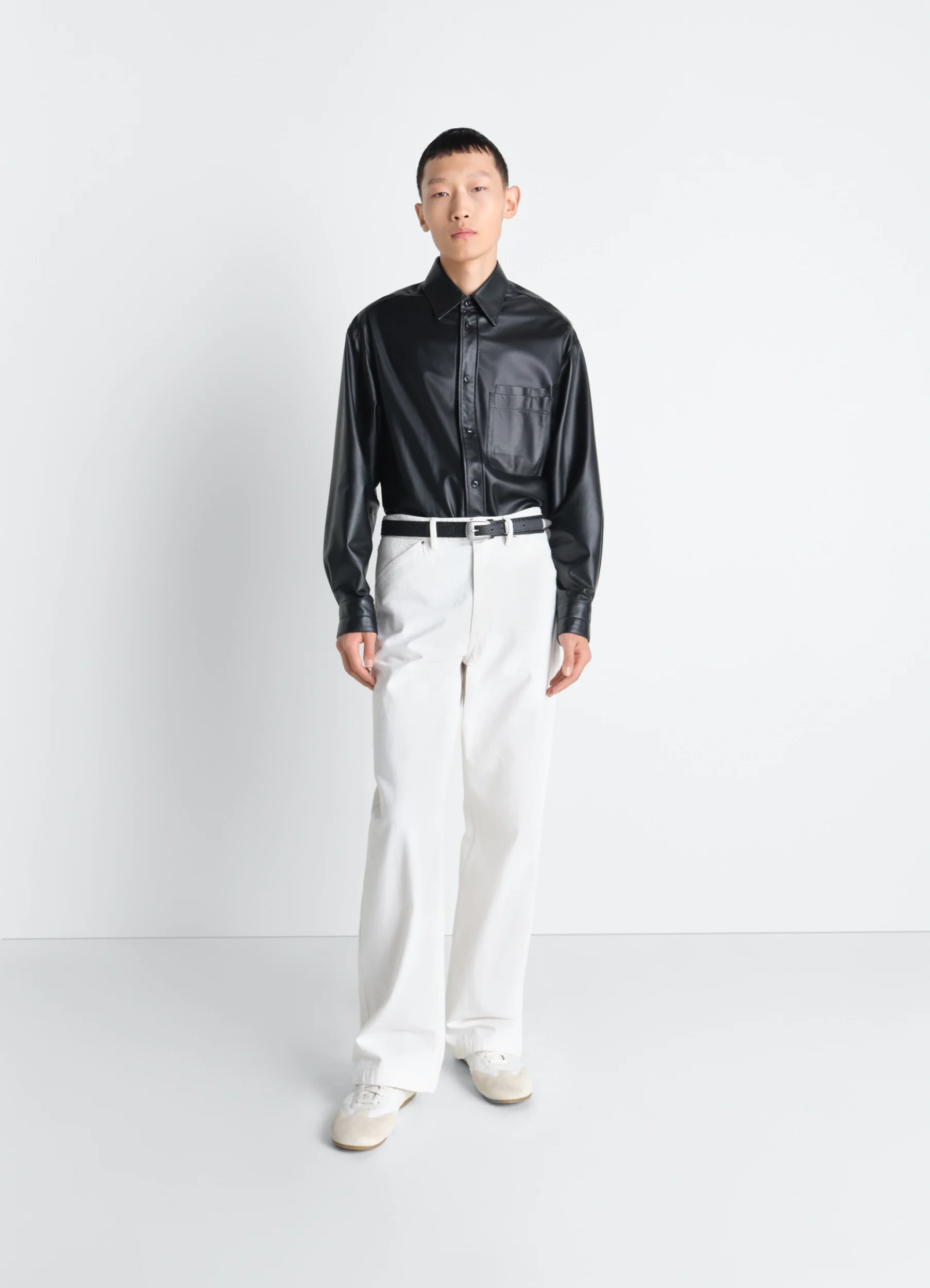 These wide-leg trousers reflect LEMAIRE’s taste for reinterpreting workwear pieces. This wardrobe essential is crafted from medium-weight bleached denim.